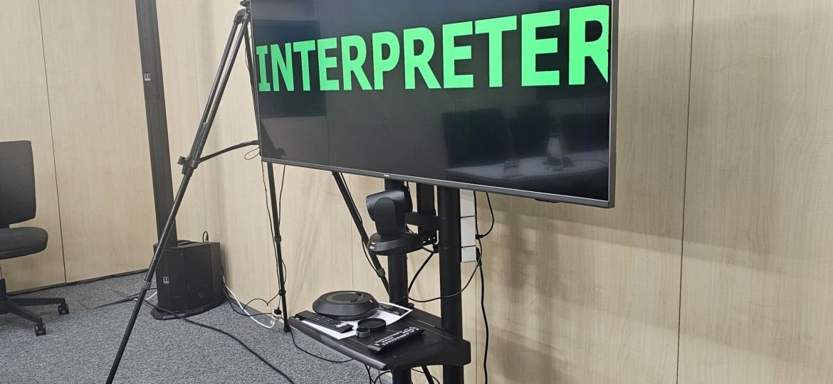 Levámos também sistema de gravação de vídeo, não só para os intérpretes que estavam em remoto, como também para que pudéssemos gravar a reunião para que se realizasse posteriormente a ata. Fizemos também a gestão da reunião online.