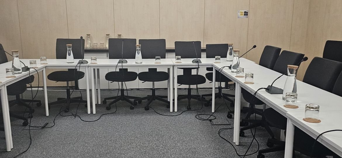 A reunião teve lugar maioritariamente em inglês mas alguns dos participantes optaram por falar em português. Levámos todo o equipamento de captação de som, bem como a nossa própria internet por não podermos aceder à do local.