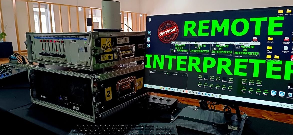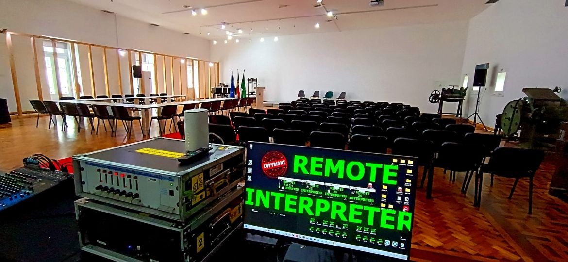 Por não compensar a deslocação de intérpretes, o cliente procurou-nos para interpretação simultânea remota. Tínhamos todo o equipamento de áudio no local, com os intérpretes em remoto.